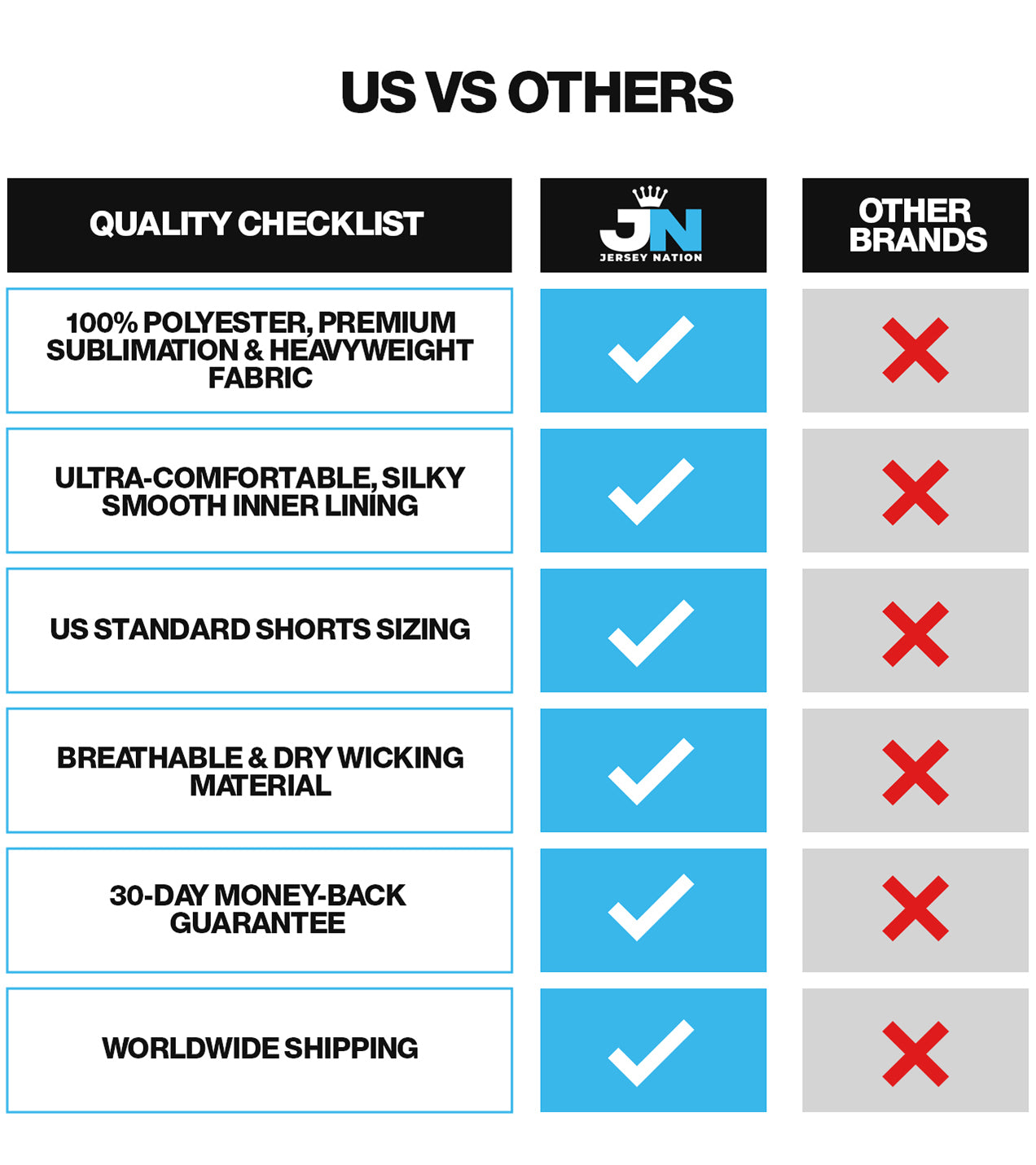 We have extremely high confidence in our products and the quality of our jerseys & shorts which is why we offer a full money back guarantee if you receive a product that has any issues with quality. Our number 1 goal is to ensure you are 100% satisfied with your purchase.
