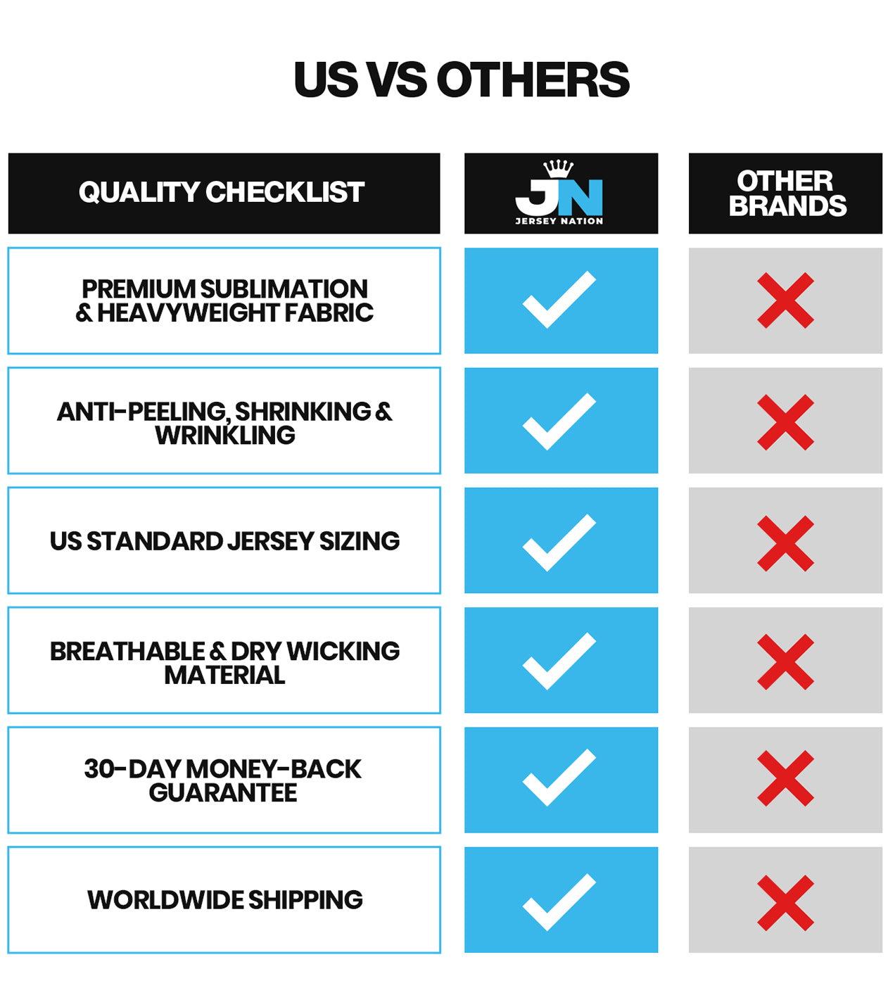 We have extremely high confidence in our products and the quality of our jerseys & shorts which is why we offer a full money back guarantee if you receive a product that has any issues with quality. Our number 1 goal is to ensure you are 100% satisfied with your purchase.