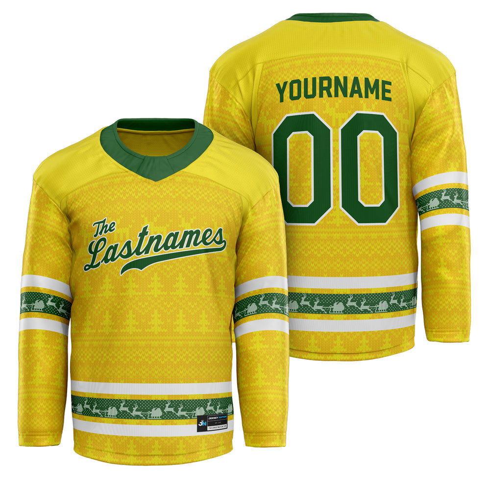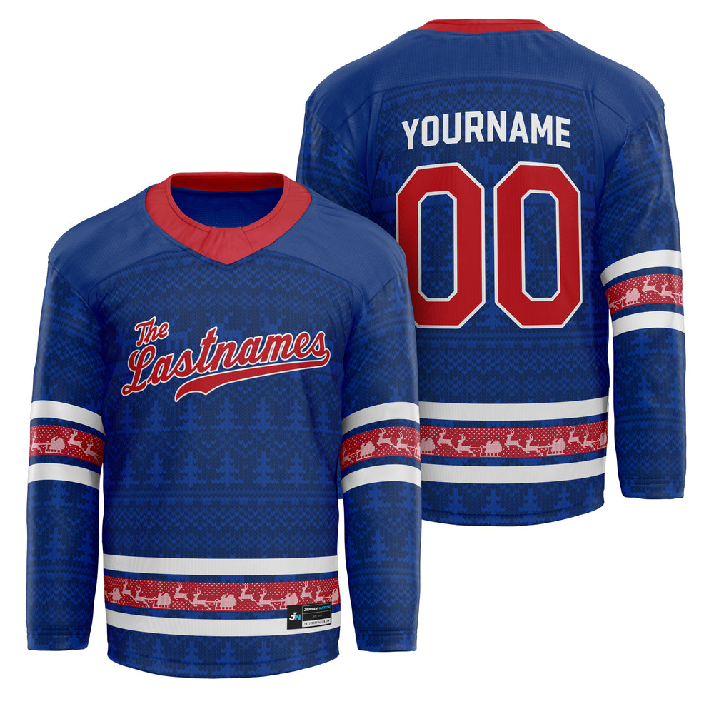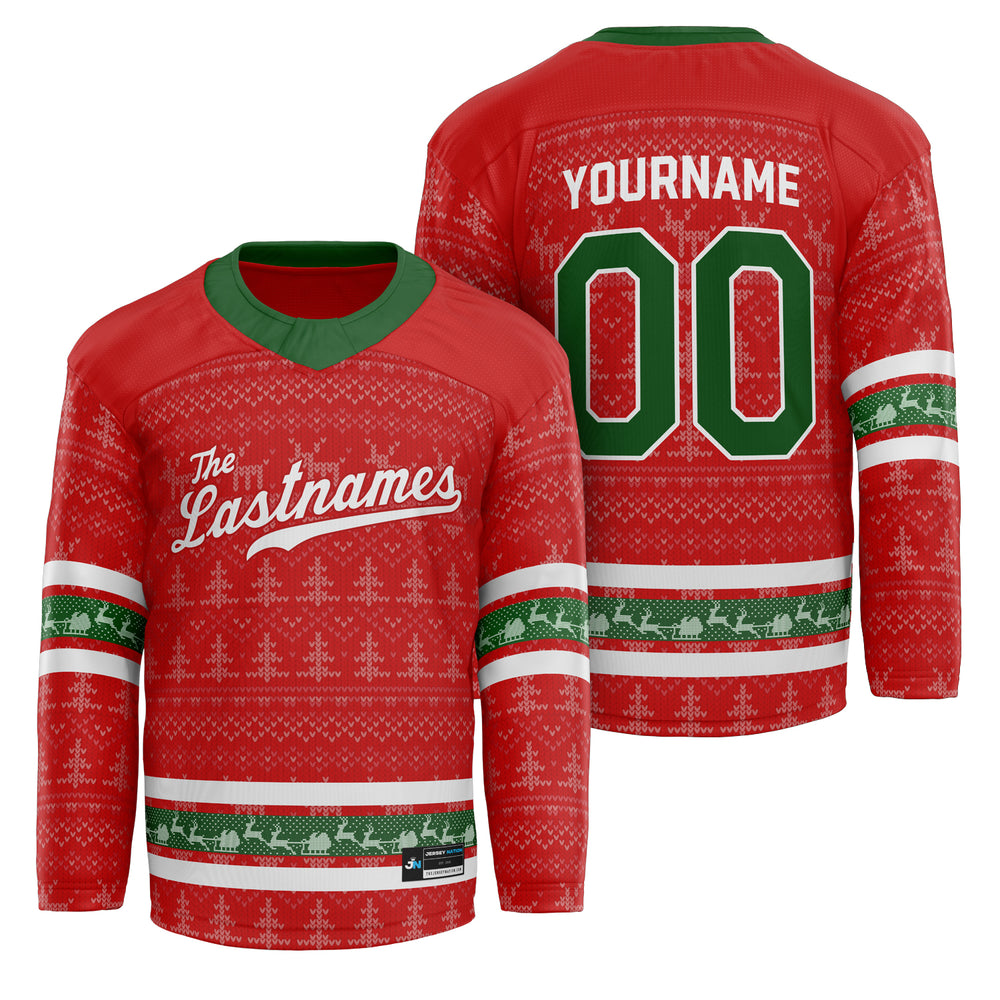 Celebrate the holidays in style with our Family Christmas custom Hockey Jerseys. Personalize the front with your family’s last name (or any preferred name), and make it truly yours by adding your own name and number on the back. Built for comfort and designed to last, this jersey is perfect for matching family photos, Christmas parties, or holiday gifts.